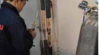 這是焊接完成后必須對(duì)銅管進(jìn)行的壓力測(cè)試,往銅管內(nèi)充入一定壓力的氮?dú)膺M(jìn)行保壓,一般壓力測(cè)試時(shí)間為24小時(shí)。