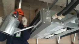 施工隊(duì)進(jìn)場(chǎng)第一步就是吊裝內(nèi)機(jī),吊裝時(shí)需要注意: